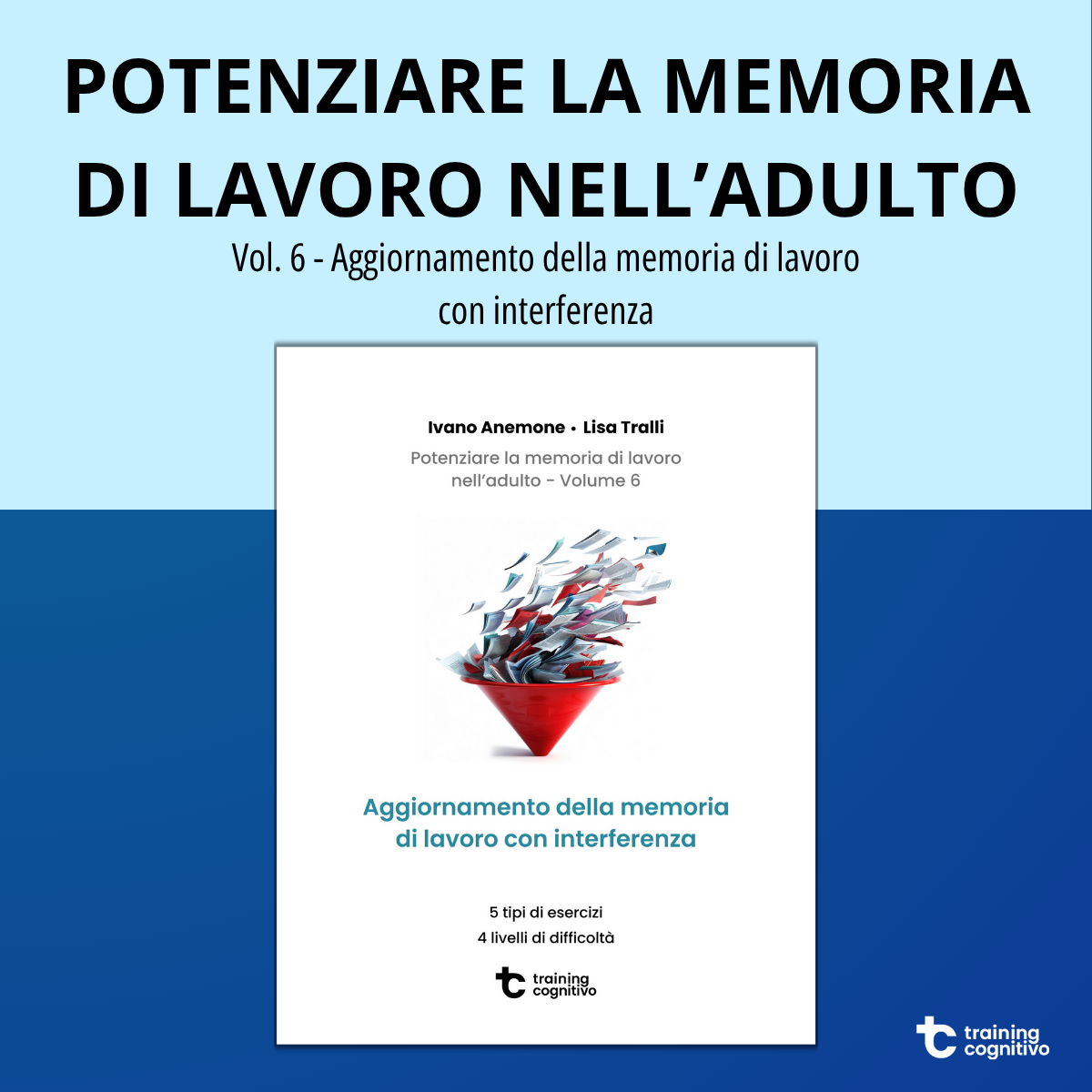 Questo volume fa parte di una collana incentrata sugli esercizi per la riabilitazione delle funzioni attentivo-esecutive e, nello specifico, è stato creato per esercitare principalmente varie componenti della memoria di lavoro, spesso carente nelle persone con deficit cognitivi e che va incontro a declino con l’avanzare dell’età. Questa sezione, in particolare, è dedicata a esercizi per allenare l’aggiornamento della memoria di lavoro, con però un incremento del carico cognitivo aggiungendo la difficoltà attraverso la richiesta di gestione dell’interferenza.